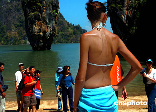 2月中旬的泰國(guó)布吉島一處箸名旅游景點(diǎn),游客絡(luò)繹不絕,游性濃厚。海嘯地震過(guò)后,到這里旅游的客人日益增多,當(dāng)?shù)芈糜螛I(yè)正在逐步復(fù)蘇。作者:宋吉河