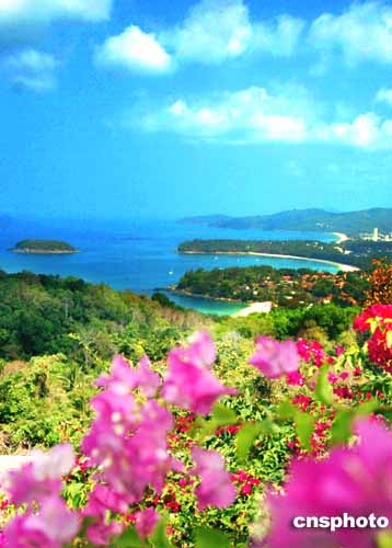 2月中旬的泰國布吉島三海風(fēng)光旅游區(qū),風(fēng)和日歷,絢麗的山花映襯著碧藍(lán)的大海,繪成一幅美麗畫卷。海嘯地震過后,布吉島當(dāng)?shù)叵嚓P(guān)方面積極刺激旅游業(yè)發(fā)展,目前游客人數(shù)日益增多,往日的繁榮正在逐步復(fù)蘇。作者:宋吉河