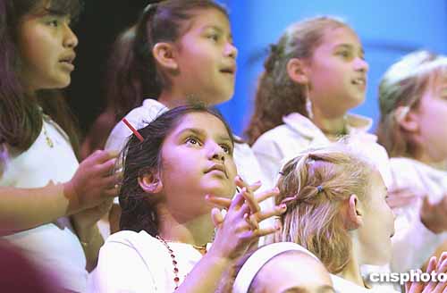 當?shù)貢r間二十日晚,居于灣區(qū)的印度等各族裔的八十個團體為幫助海嘯災區(qū)賑災,在美國加州圣荷西惠普體育場舉行“萬眾一心”籌款活動,三千人參加,募得款項超過一百萬美金。圖為各族裔兒童合唱“世界兒童”。作者:陳鋼