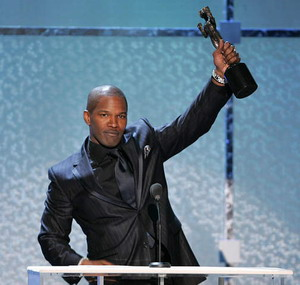 今年無疑是屬于杰米福克斯的一年,除了以《雷》片入圍奧斯卡影帝外,他還以《借刀殺人》提名奧斯卡最佳男配角獎(jiǎng),表現(xiàn)極為耀眼。而靈歌王雷-查爾斯生前最后的專輯在本月舉行的格萊美頒獎(jiǎng)禮上獲得八項(xiàng)大獎(jiǎng),也為杰米?怂箚柖W斯卡小金人增添了砝碼。
