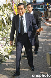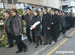 喪禮今早八時開始,以佛教儀式進行。靈堂內(nèi)外放滿各界祭送的花圈。
