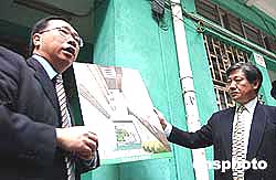 香港市區(qū)重建局18日宣布,準備斥資1億元在灣仔茂蘿街展開“舊區(qū)活化”項目,協(xié)助推進文化創(chuàng)意產(chǎn)業(yè)發(fā)展。圖為官員向媒體展示重建后的藍圖。作者:譚達明