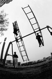 體能訓(xùn)練近乎殘酷。在最初的一個(gè)半月的封閉訓(xùn)練中,她們沒有一天的休整機(jī)會(huì),練隊(duì)列、拉單杠、撐雙杠、轉(zhuǎn)旋梯、繞滾輪、跑3000米……每天都是超負(fù)荷訓(xùn)練。按過(guò)去的慣例,這段日子,她們每人平均磨壞3雙運(yùn)動(dòng)鞋。隨后是跳傘訓(xùn)練,這種訓(xùn)練既學(xué)習(xí)飛行員自救的方式,也錘煉心理承受能力和頑強(qiáng)的戰(zhàn)斗精神。每天,女學(xué)員都要在兩米高的跳臺(tái)上爬上、爬下數(shù)百次。