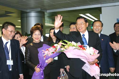 國(guó)民黨副主席江丙坤一行乘坐的CZ三五○七航班今天下午十六點(diǎn)二十八分抵達(dá)南京祿口國(guó)際機(jī)場(chǎng),受到江蘇有關(guān)方面及在蘇臺(tái)商的熱烈歡迎。這是該參訪團(tuán)赴大陸“緬懷之旅、經(jīng)貿(mào)之旅”的第二站。作者:陳旻