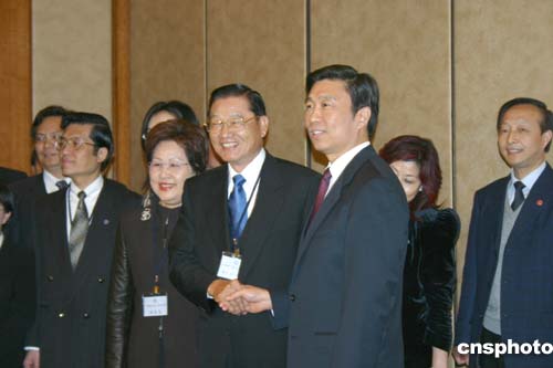 中新社南京三月二十九日電(記者陳旻)今晚,中共江蘇省委書記、江蘇省人大常委會(huì)主任李源潮在南京金陵飯店會(huì)見(jiàn)并宴請(qǐng)了剛剛抵達(dá)的國(guó)民黨參訪團(tuán)江丙坤一行。