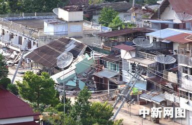 印度尼西亞蘇門答臘島附近海域28日深夜發(fā)生里氏8.5級強(qiáng)烈地震,目前至少有430人已被證實(shí)在地震中死亡,其中震中附近的尼亞斯島有320人死亡。圖為印尼蘇門答臘島北部尼亞斯島的房屋遭到毀壞。