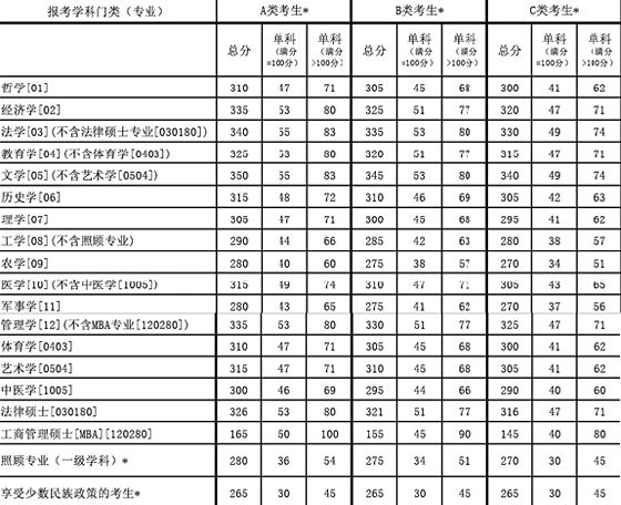 三、體現(xiàn)全面考核、綜合評定的原則。確定進入復試最低分數(shù)線,對考生不但有總分的要求,而且有單科的成績要求,以體現(xiàn)對考生知識結構的全面考察。