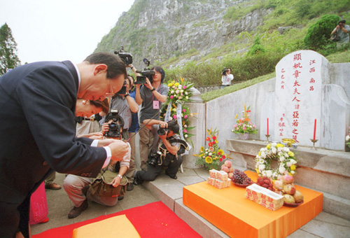 蔣孝嚴(yán)此前也數(shù)度來桂林祭母。最近一次是去年七月二十七日,攜夫人黃美倫來到長眠于桂林市郊區(qū)馬鞍山西側(cè)鳳凰嶺下母親章亞若墓前祭奠母親,告慰九泉之下的母親已了卻認(rèn)祖歸宗的心愿。據(jù)悉,此次蔣孝嚴(yán)大陸之行,在桂林只作短暫停留。四日掃墓結(jié)束后,當(dāng)天下午便離開桂林,飛西安出席當(dāng)?shù)匾粋(gè)經(jīng)貿(mào)活動(dòng)。有消息稱,若時(shí)間允許,蔣孝嚴(yán)也可能順道訪國民黨主席連戰(zhàn)的祖母墳?zāi),為連戰(zhàn)的西安之行鋪路。之后會(huì)再飛返浙江溪口蔣氏故居祭祖,到毛太夫人墳前掃墓。