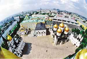攝像機在克里姆林宮上空俯拍這一事實本身就非同尋常。盡管克里姆林宮也對外開放,但游客們只能自由進(jìn)入兵器館、國立克里姆林宮、教堂廣場、教堂博物館,觀看“炮王”等景點,其他地方不能接近,更不允許攜帶攝像設(shè)備。