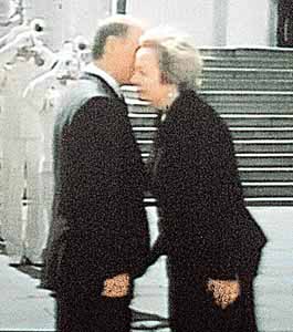 鏡頭三:這是普京夫婦,在盡量小聲地竊竊私語。他們什么話都沒說,但兩人的姿勢比任何話語都美觀,從這個創(chuàng)紀(jì)錄的鏡頭上可以清楚地看到這一點。