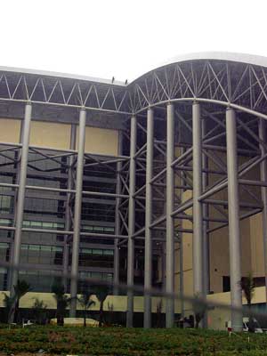 現(xiàn)場(chǎng)為路氹新填海區(qū)“澳門(mén)蛋”體育館建筑工地,樓高約六十米,天頂距地面有十八層樓高,因工程需要,體育館基本全由巨型鐵通組成,三名內(nèi)地勞工攀上天頂平臺(tái)外“要跳”,不時(shí)在天頂上走來(lái)走去,或坐在欄河旁邊,險(xiǎn)象環(huán)生。消防員在地面開(kāi)動(dòng)多個(gè)巨型氣墊戒備。而在天頂上,救護(hù)人員及談判專(zhuān)家亦需配用安全帶做足安全措施方可進(jìn)行勸吁及救援準(zhǔn)備工作。