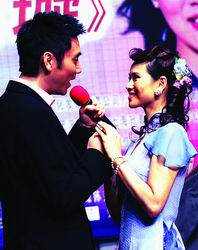 中新網(wǎng)4月20日電 昨天,上海話劇中心五樓排練廳,大型多媒體音樂劇《周璇》正在排周璇第一次代替王人美作為主演上臺(tái)的戲。主演伊能靜在現(xiàn)場(chǎng)非;钴S,鬼臉、小動(dòng)作不斷。別以為她很輕松,其實(shí),她評(píng)價(jià)這次演出比她這些年來的任何表演都難,連和男主角林依輪的感情戲,她都難以攻克,“我們的雙眼不能實(shí)質(zhì)性對(duì)視!”