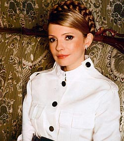 從雜志社提前披露的一些插圖來看,拍攝地點應(yīng)是季莫申科總理在政府大樓內(nèi)的休息室,家具比較大氣,也顯得有些笨重,具有典型的蘇聯(lián)官員風(fēng)格,顯然,已有不止一屆的政府總理使用過。季莫申科不僅穿著西裝,還戴有披風(fēng)。