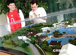 美國洛杉磯著名的杭廷頓博物院花園內(nèi)正在興建一座中國蘇州園林,圖為游客欣賞其精致的模型。作者:賈國榮