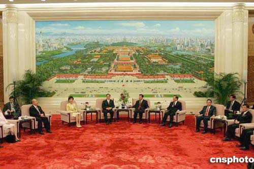 中新網(wǎng)4月28日電 中共中央政治局常委、全國(guó)政協(xié)主席賈慶林今日(28日)17時(shí)30分左右,在人民大會(huì)堂會(huì)見(jiàn)了連戰(zhàn)率領(lǐng)的中國(guó)國(guó)民黨大陸訪問(wèn)團(tuán)一行。