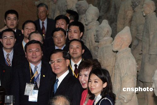 中新社西安四月三十日電(記者冽瑋)今天下午,連戰(zhàn)先生來到著名的秦始皇兵馬俑博物館,參觀了威武雄壯的秦始皇兵馬俑坑并現(xiàn)場留言紀(jì)念。