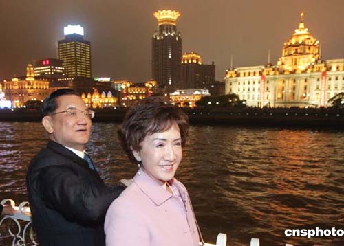 中新社上海五月一日電(記者許曉青劉舒凌)“十里洋場今勝昔,夢回江灣兩岸情!”中國國民黨主席連戰(zhàn)今晚在上海黃浦江畔的發(fā)出如是感慨。晚宴之后,連戰(zhàn)一行旋即登上黃浦江上最著名的游船——風(fēng)采號,開始了他的滬上“尋夢”之旅。