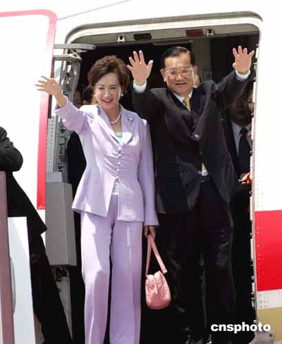 約中午十二時三十分,連戰(zhàn)一行陸續(xù)步上舷梯,連戰(zhàn)與夫人連方瑀一同向停機坪上的歡送人群頻頻揮手告別,與連戰(zhàn)先生同機返臺還有中國國民黨副主席吳伯雄、林澄枝、江丙坤等。