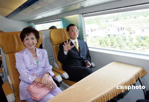 在短短約七分鐘的車程里,連戰(zhàn)所在的貴賓車廂還上演了一幕“攝影秀”。眾記者為抓拍到連戰(zhàn)體驗“極速魅力”的精彩場景,被要求在列車通道上依次列隊迅速通過,由于在連戰(zhàn)面前停留的時間極短,拍攝畫面仍十分艱難,一時成為隨團記者最感興趣的話題。完
