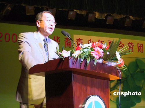 二00五印尼華裔青少年夏令營6月28日下午在湖南長沙閉營。國務(wù)院僑務(wù)辦公室副主任、中國新聞社社長劉澤彭、湖南省副省長賀同新及國僑辦相關(guān)部門負(fù)責(zé)人參加閉營式。圖為劉澤彭寄語印尼華裔青少年,希望他們將看到和學(xué)到的博大精深的中華文化帶回印尼。作者:劉雙雙