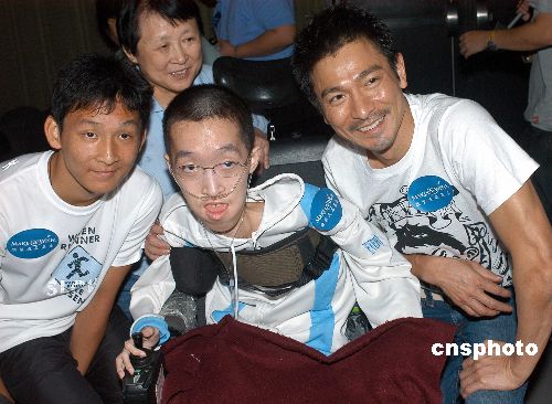 中新網(wǎng)7月5日電 據(jù)香港媒體報(bào)道,劉德華昨日以嘉賓身份出席“娛藝院線有限公司(UA院線)慶祝香港開業(yè)二十周年”,大會(huì)更與“愿望成真基金”合辦愿望樹籌款活動(dòng),為幫助罹患重病的兒童,華仔自掏腰包拿出“金!本杩睿瓉(lái)他十年來(lái)探訪這班患病兒童,其中兩名患肌肉萎縮癥和腦癌的病人,昨日亦有到場(chǎng)送上鮮花答謝偶像。