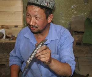 英吉沙小刀久負盛名,小刀廠的工匠會在制作的小刀上刻上自己的名字。