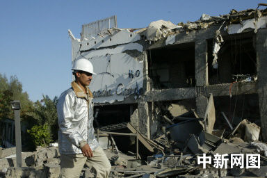 一名埃及人走過遭到連環(huán)爆炸襲擊后的酒店廢墟