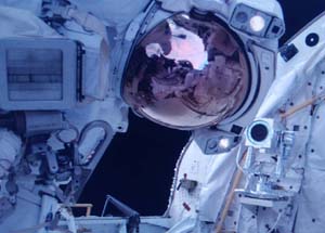 美國(guó)東部時(shí)間八月三日早上四時(shí)四十八分,美國(guó)發(fā)現(xiàn)號(hào)宇航員史蒂芬·羅賓遜和野口聰一開始支持國(guó)際空間站的第六十次太空行走。