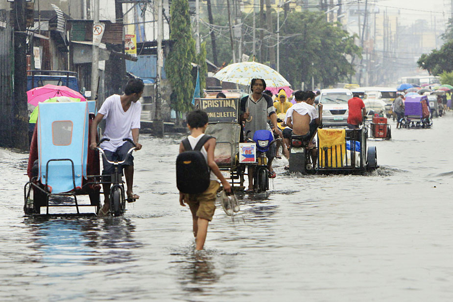 7月16日,一場熱帶風(fēng)暴當(dāng)天襲擊了菲律賓首都馬尼拉。這場風(fēng)暴不但帶來大量降水,也使城市大量積水,出行困難。