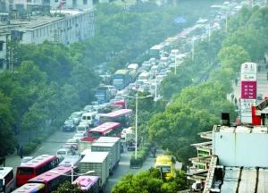 11月5日,南昌市青山南路一處加油站,大量的車輛排成長隊等待加柴油,造成了該路段出現(xiàn)嚴(yán)重?fù)矶。本報傳真圖
