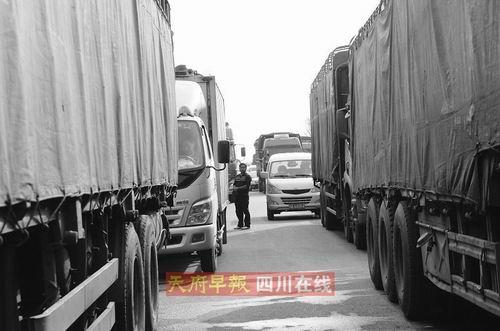 成都某物流基地車場管理員王興順發(fā)現(xiàn),從10月中旬開始,車場內(nèi)停的車越來越多,截至昨天上午11點(diǎn),車場內(nèi)停了1500多輛車,“從開張以來,就沒有見過這樣的情況!蓖跖d順說,從上個(gè)月開始,調(diào)度室里熱鬧不起來了,司機(jī)們運(yùn)完貨回到車場,“都找地方玩去了!