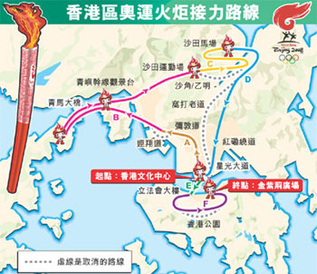 香港康樂及文化事務(wù)署署長周達(dá)明表示,特區(qū)政府早前測(cè)試顯示,原定火炬?zhèn)鬟f路線所需時(shí)間緊迫,車隊(duì)安排和對(duì)交通的影響也需改善,所以調(diào)整路線。