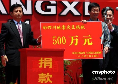 圖:江西向四川災區(qū)捐款500萬元