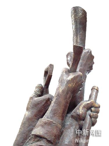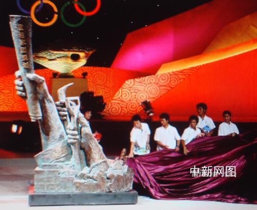 中新網(wǎng)北京6月2日電 (記者 賴海隆)5月31日晚,一尊名為“高擎圣火,克難興邦”的“5.12”大型紀(jì)念雕塑出現(xiàn)在“2008奧運(yùn)景觀雕塑方案征集大賽頒獎活動”現(xiàn)場。專程從重災(zāi)區(qū)趕來的十余名北川中學(xué)的幸存者與作者一起共同為此尊雕塑揭幕。這一象征中國人表達(dá)自強(qiáng)不息,重建家園,辦好奧運(yùn)決心的一幕,將現(xiàn)場氣氛推向了高潮。