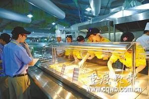 實(shí)景:餐廳也是奧運(yùn)村里的主題。奧運(yùn)村的主餐廳位于北部國(guó)際區(qū)的東側(cè),分為運(yùn)動(dòng)員餐廳和員工餐廳,在奧運(yùn)賽時(shí)提供24小時(shí)的餐飲服務(wù)。走進(jìn)運(yùn)動(dòng)員餐廳,第一個(gè)感覺就是大,放眼望去,四周密密麻麻都是桌椅。據(jù)介紹說,賽時(shí)主餐廳可以同時(shí)容納5000人就餐。整個(gè)餐廳設(shè)有四大餐區(qū):國(guó)際餐區(qū)、地中海餐區(qū)、亞洲餐區(qū)及中國(guó)餐區(qū)。地中海餐區(qū)的意大利面和清蒸魚,味道還比較爽口,非常適合歐洲人。在餐廳內(nèi),人們還驚喜地發(fā)現(xiàn)了中國(guó)的特色食品——全聚德的烤鴨。據(jù)介紹,奧運(yùn)村開村后,餐廳內(nèi)的每一道菜品都會(huì)配有營(yíng)養(yǎng)卡,用中英法三種文字標(biāo)識(shí),將標(biāo)注食品的原材料構(gòu)成,菜品的營(yíng)養(yǎng)程度,食品所含卡路里等。