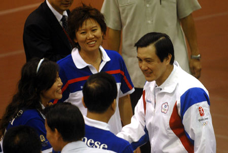 7月30日,馬英九在高雄向出席北京奧運(yùn)的中華臺北隊(duì)授旗。