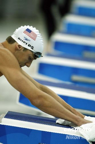 圖:菲爾普斯細(xì)心擦拭跳臺(tái) 200米自由泳輕松晉級(jí)