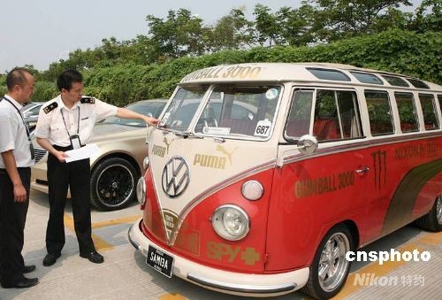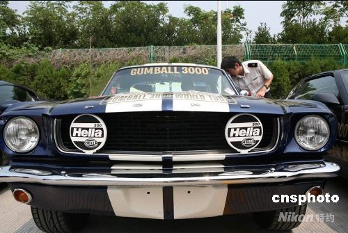 圖為福特野馬(Ford Mstang)跑車正在接受海關(guān)關(guān)員認(rèn)真的檢查。