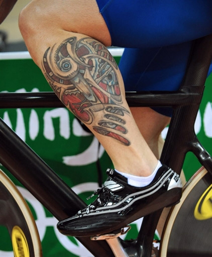 英國(guó)自行車運(yùn)動(dòng)員紋在腿部的圖騰,火焰一般,煞是好看。