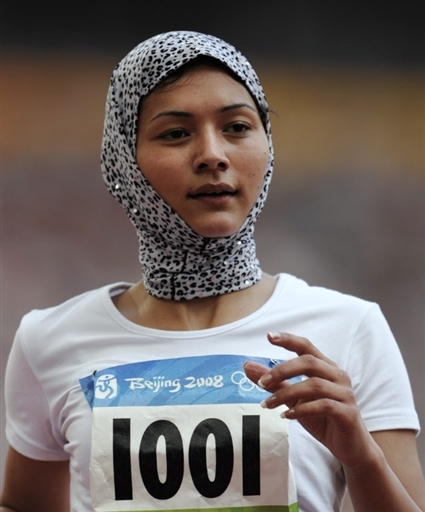 田徑賽場(chǎng)上阿富汗女選手別致的圍巾造型。