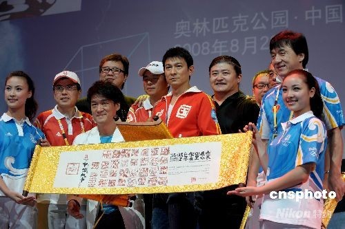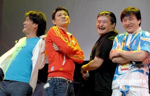8月22日下午,明星成龍、劉歡、劉德華、周華健亮相北京奧林匹克公園,共同演唱一首《難說再見》。這首動人的歌曲將成為北京奧運跟世界話別的標(biāo)志性符號。中新社發(fā) 陳文 攝