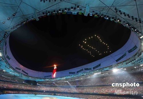 8月24日晚,第二十九屆夏季奧林匹克運(yùn)動(dòng)會(huì)在北京閉幕。盛大閉幕式開始,鳥巢焰火齊放,焰火圖案數(shù)字從29開始倒計(jì)時(shí),最后一個(gè)數(shù)字“0”用拉手花束炸開一個(gè)滾動(dòng)的、火紅的圓圈,圓圈周長(zhǎng)長(zhǎng)達(dá)600米,相當(dāng)于圍繞鳥巢碗口“跑”一圈。中新社發(fā) 任晨鳴 攝