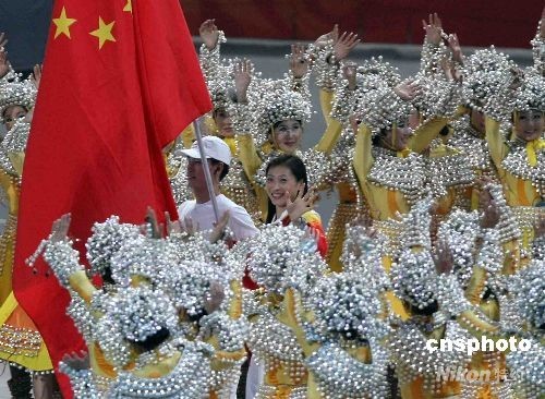 8月24日晚,第二十九屆夏季奧林匹克運動會在北京閉幕。33歲的羽壇老將、上屆及本屆奧運會羽毛球女子單打兩屆冠軍張寧擔(dān)任中國代表團旗手。中新社發(fā) 任晨鳴 攝