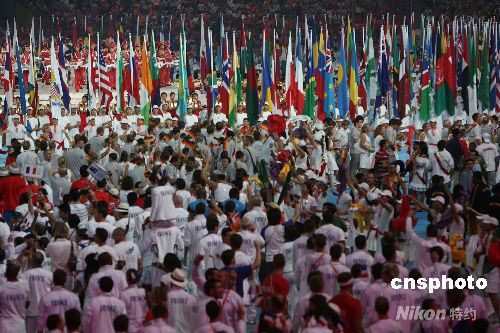 8月24日晚,北京奧運(yùn)會(huì)閉幕式在奧林匹克公園內(nèi)的國(guó)家體育場(chǎng)“鳥(niǎo)巢”舉行,各國(guó)運(yùn)動(dòng)員入場(chǎng)。 中新社發(fā) 武仲林 攝