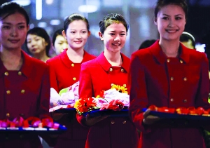 隨著我國各種重大賽事和活動的增多,對禮儀小姐的需求量也在大增,禮儀培訓(xùn)也成為熱門。劉曉東老師告訴記者,今年職業(yè)高中招生許多專業(yè)都沒有招滿,但是和禮儀相關(guān)的航空服務(wù)專業(yè)卻出現(xiàn)飽和!爸徽300多人,卻來了1000多人,就是因?yàn)檫@個(gè)專業(yè)的就業(yè)率和薪酬水平確實(shí)比較突出!庇浾吡私獾,如果定向去航空公司,一般的地勤人員算上補(bǔ)助可以拿到2000元至3000元的薪酬水平,表現(xiàn)特別出色的學(xué)生可以去外航,如韓亞航空每年招聘空姐的起薪就在1000美元左右。還有些學(xué)生因?yàn)樾蜗蠛谩⑼庹Z好,也被一些金融機(jī)構(gòu)看好,成為了大堂經(jīng)理。