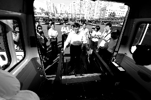昨日,北京公交集團(tuán),北京市交通委副主任周正宇(中)正在體驗無障礙出租車。