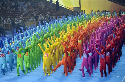 北京2008殘奧會開幕式9月6日晚在北京國家體育場舉行,“鳥巢”內(nèi)五彩繽紛。中新社發(fā) 宋吉河 攝