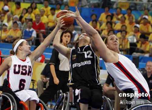 圖:殘奧會女子輪椅籃球美國隊戰(zhàn)勝德國隊