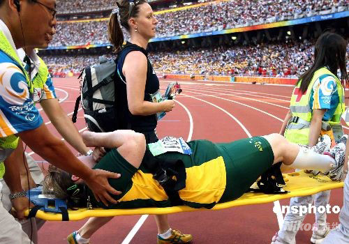 9月12日,北京殘奧會(huì)田徑比賽舉行在北京奧林匹克公園內(nèi)的國家體育場-鳥巢舉行,澳大利亞女子鉛球選手卡思·普勞德福特在上午進(jìn)行的女子鉛球-F35/36級別的比賽第五次投擲后當(dāng)場昏厥,被緊急送往醫(yī)院救治。 中新社發(fā) 任晨鳴 攝