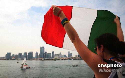 9月11日下午,北京殘奧會(huì)帆船比賽進(jìn)行第三個(gè)比賽日的比賽,當(dāng)參賽選手起航前往賽場(chǎng)時(shí),各國觀眾拿著標(biāo)語為選手加油。中新社發(fā) 王輝 攝